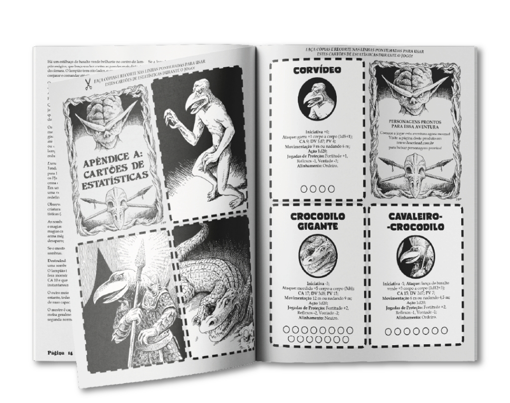 O pequeno vilarejo está sob o ataque de uma horda de corvídeos: humanoides musculosos e de pele verde, com bicos assustadores e mãos estranhas em formato de garras. Os corvídeos contam com o apoio de guerreiros ferozes que enfrentam seus inimigos montados em crocodilos gigantes. A origem da invasão é um obelisco de pedra colossal que emerge do lago, escorrendo água, lama e lodo. Personagens corajosos (ou gananciosos) o suficiente para explorar as profundezas do obelisco descobrirão poderosas magias capazes de transmutar a matéria física, e de rasgar o véu entre a sombra e a luz.